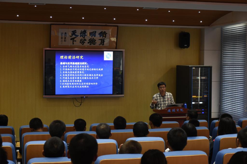 报告会上,陈宇炜介绍了鄱阳湖和太湖的水华防治工作,探讨了有关水资源方面的研究前景,引导学生深入认识湖泊生态维护的重要性,并讲解了经过自己不懈努力所研究出的水华治理方案,与大家分享了自己期望攻克水华难题,恢复湖泊湿地生态的愿望。他还结合自身学习与工作经历,对同学们本科阶段学习提出了指导建议。