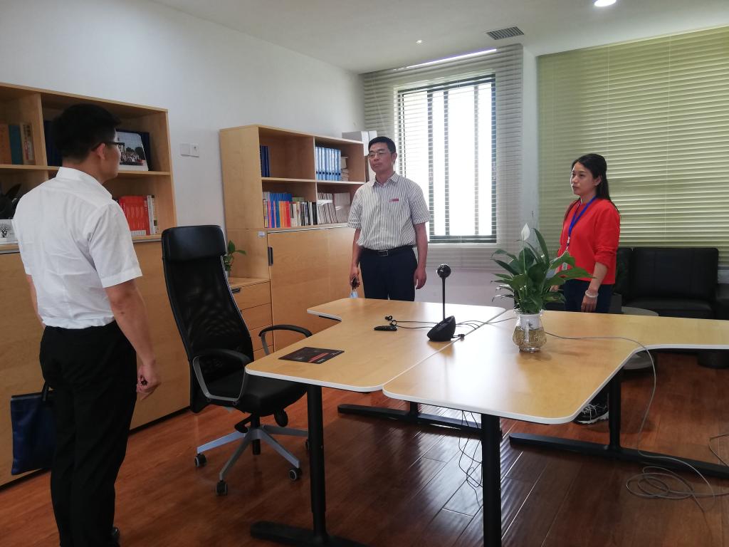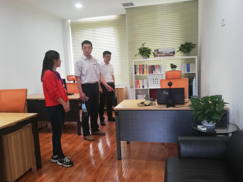 调研过程中,陆伟锋详细询问了学院疫情防控物资配备、学生返校复学报到、教学安排和考研复试“云面试学堂”建设等情况,对学院前期准备工作给予充分肯定,并就做好学院下一步工作提出要求。