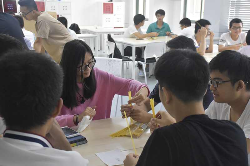 陈冰教授表示,如何培养研究导向型思维、批判性思维,如何不人云亦云是一门很重要的学问。陈冰教授在西交利物浦大学教授设计类课程,他列举了多项带学生进行创新研究的例子,告诉我们设计要从研究出发。随后,同学们至B508开始动手实践,在老师的指导下用意大利面搭建平台以撑起鸡蛋而不落。