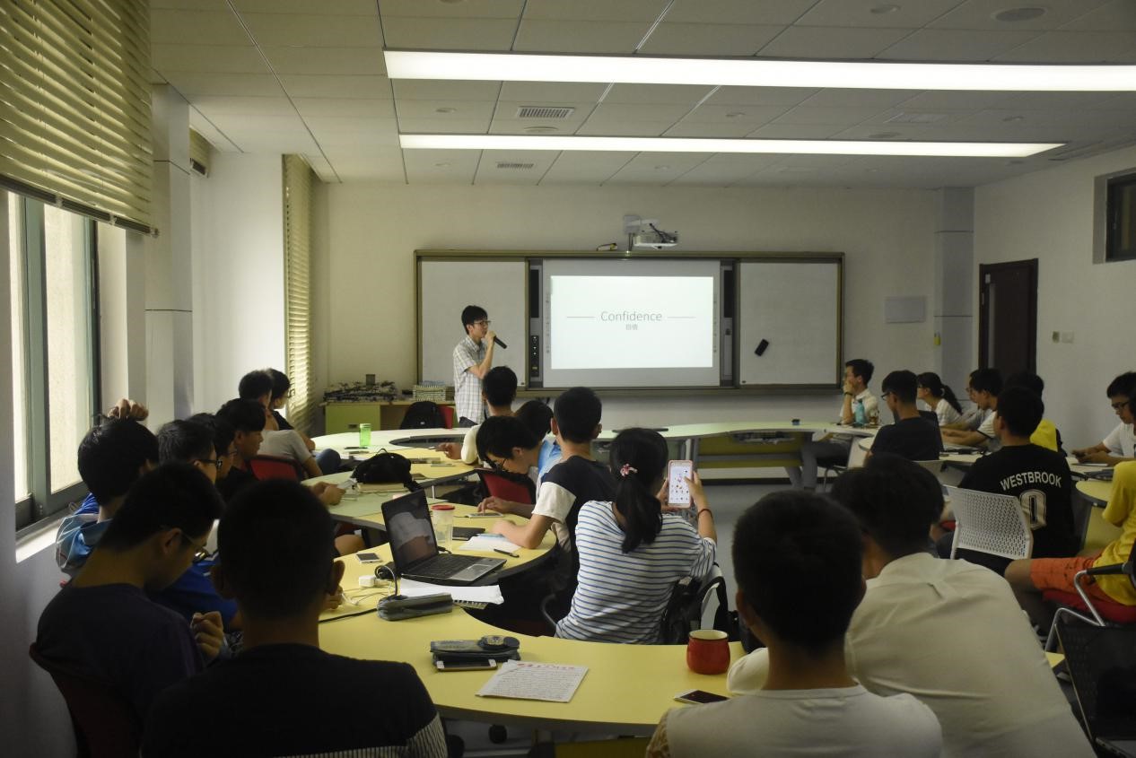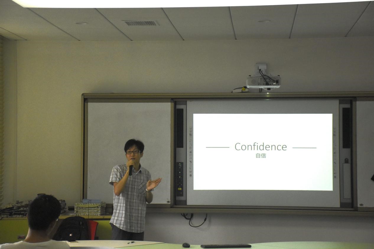 为什么会不自信?他认为其原因有三:准备不够充分,害怕面对未知,了解不够透彻。郭逸洋同学分享了自己一个学长的故事:学长是个两百多斤的胖子,因为他自信自己能瘦下来,所以他用六个月的时间甩去了几十斤的肥肉;因为他自信,所以他无惧与一群拥有健美身材的人一起“裸奔”。自信让他容光焕发,昂首挺胸。如何做到自主?有压力,有目标,有恒心。郭逸洋同学认为大学生活偏自主学习,而且自主在诺丁汉大学的求学生活体现得尤为明显。怎样自理?有计划,有安排,有dead line。郭逸洋同学以自身上学期混乱的生活为例,生动地讲解了自我管理的重要性,同时借现在大学生在临考前爆发出来的高效率学习现象指出dead line对我们的影响和有dead line的重要性。