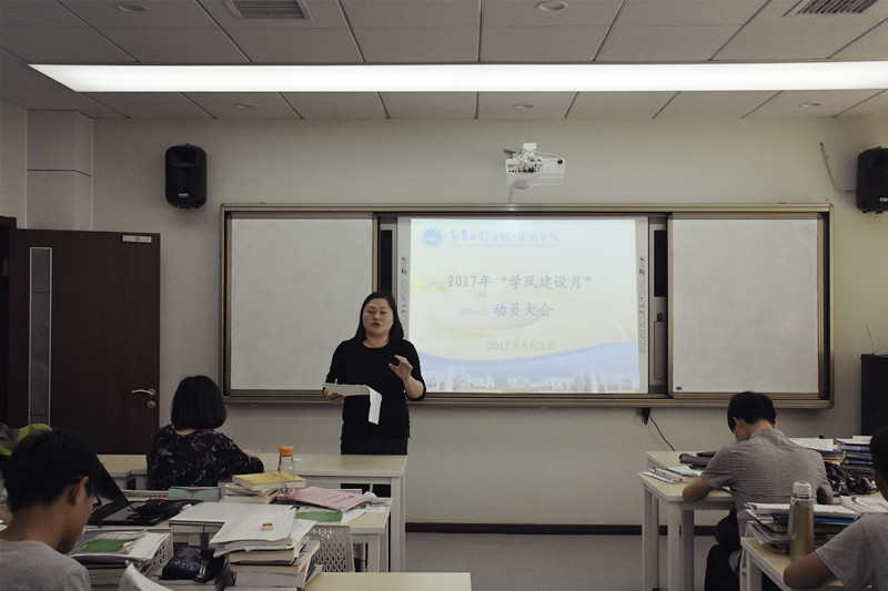 大会的最后,张老师强调优良的学风关乎学生的进步和学院的发展,我院要在做好学校学风建设月规定动作的同时将围绕院训“修身 明德 博学 天下”四个条目开展好我院的特色活动。并要求每位同学积极投身学风建设,营造“全员创学风、人人爱学习”的良好氛围。