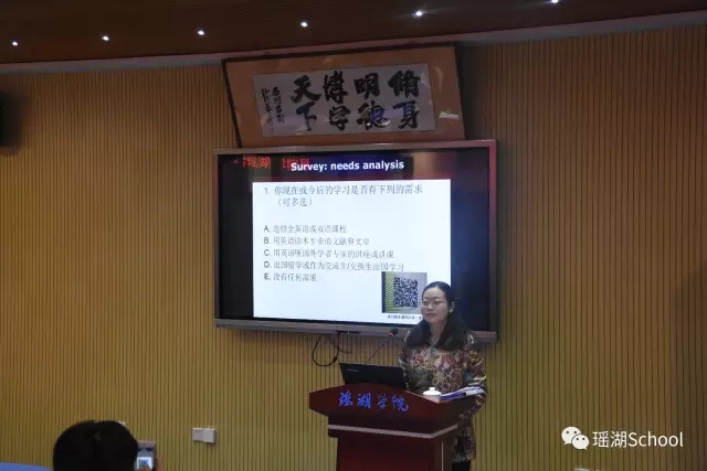 说到英语,据计算,英语是最多国家使用的官方语言,英语也是世界上使用最广泛的第一语言,英语作为欧盟和许多国际组织以及英联邦国家的官方语言,其作用的广泛性和重要性不言而喻。所以在报告会一开始邓洪波教授就makes a survey about needs analysis(学术英语需求调查),调查了大家在英语方面以后的发展方向以及在英语方面的主要困惑。