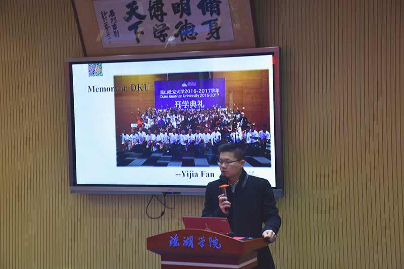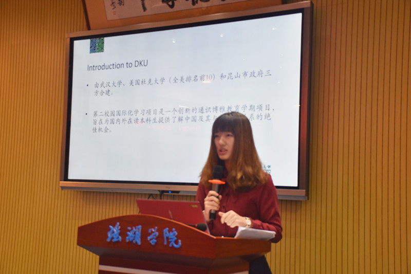 大会第二项是由瑶湖学院首位前往昆山杜克大学访学的“神秘学姐”——樊翌佳为大家分享她在杜克丰富多彩充实又快乐的学习生活。