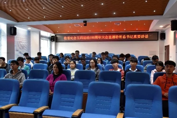 大会开始之前,在场师生全体起立,齐唱国歌。随后,认真聆听习近平总书记出席大会上发表的重要讲话。针对中国新时代青年,习近平总书记提出了树立远大理想、热爱伟大祖国、担当时代责任、勇于砥砺奋斗、练就过硬本领和锤炼品德修为这六点要求。习近平总书记在大会上这样说道:“五四运动以来的100年,是中国青年一代又一代接续奋一斗、凯歌前行的100年,是中国青年用青春之我创造青春之中国、青春之民族的100年。” 青年是整个社会力量中最积极、最有生气的力量,国家的希望在青年,民族的未来在青年。习近平总书记希望新时代中国青年要保持初生牛犊不怕虎、越是艰险越向前的刚健、勇毅,勇立时代潮头,争做时代先锋!他还表达了对社会各界的期望,呼吁大家既要理解青年所思所想,为他们驰骋思想打开浩瀚天空,也要积极教引导青年,推动他们脚踏实地走上大有作为的广阔舞台。