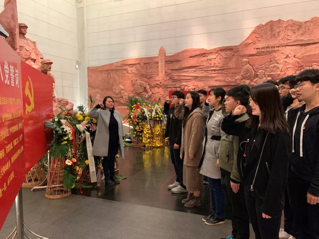 在馆内讲解员的引导下,同学们按照时间顺序依次参观了各个展厅,各位党员同志深切感受了方志敏、黄公略、毛泽潭、刘和珍、卢德铭、邹韬奋、古柏等先烈坚定的共产主义信念和革命精神。而后进入序厅为25万多名革命烈士敬献鲜花,默哀致礼,最后在张雯雯老师的带领下,全体党员在党旗下庄严宣誓,重温入党誓词。