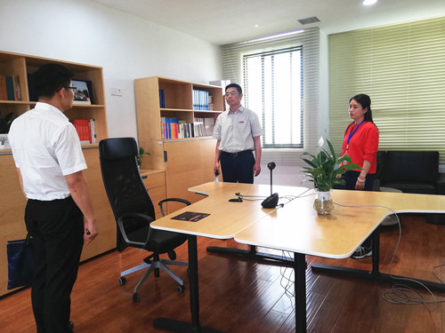 调研过程中,陆伟锋详细询问了学院疫情防控物资配备、学生返校复学报到、教学安排和考研复试“云面试学堂”建设等情况,对学院前期准备工作给予充分肯定,并就做好学院下一步工作提出要求。