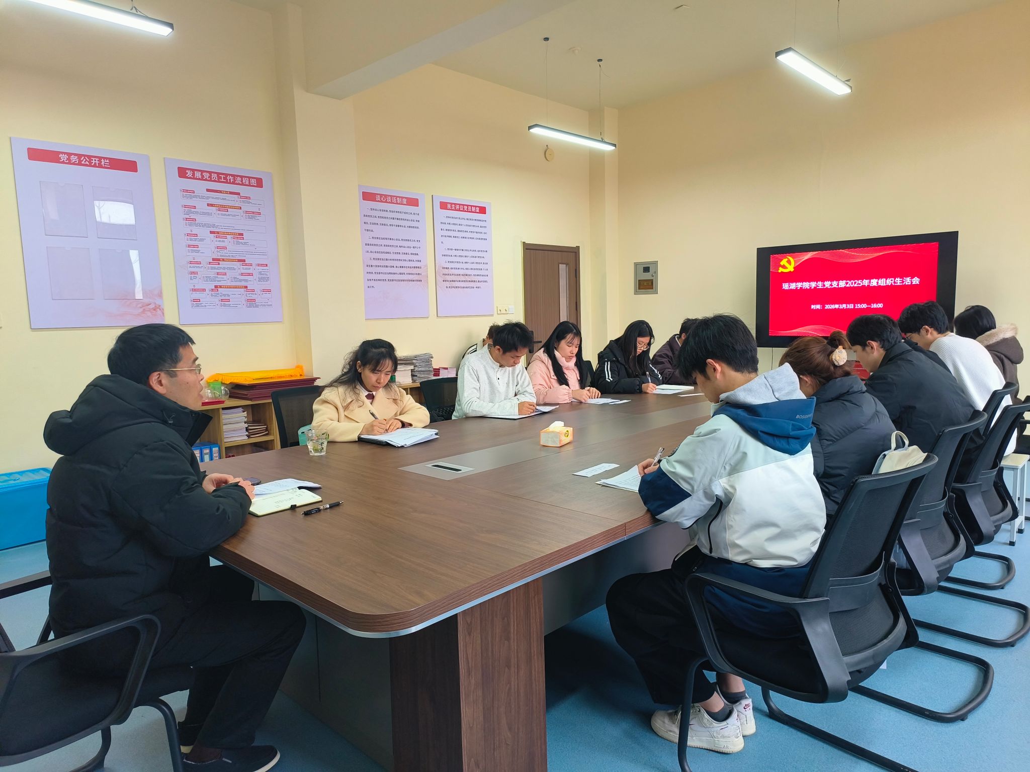 3月3日下午,瑶湖学院学生党支部在党员活动室召开2025年度组织生活会。会议由吴予越同志主持,学院党总支副书记张晓航到会指导,支部书记丁蓓蒂、全体学生党员参会,两名入党积极分子列席。