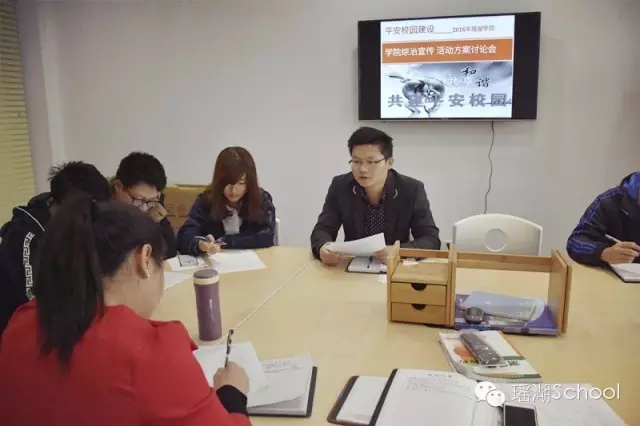学院还成立了2016年综治(平安校园建设)宣传活动工作小组,工作责任到人,层层落实,定期召开综治工作会议,认真研究,周密部署,不定期排查教室、寝室、办公室等场所的安全隐患,采取系列扎实有效的措施,努力构建平安和谐校园,努力营造平安祥和的社会氛围。(文/ 张荣富 图/刘斐男)