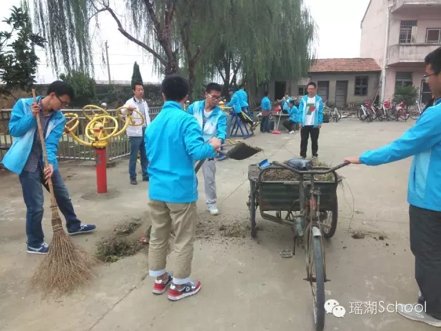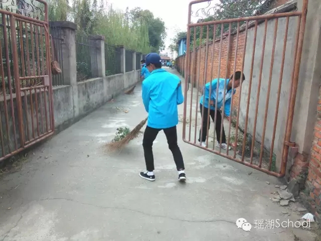 在骑行将近四十分钟后,我们终于抵达尤口敬老院。在与敬老院院长交流过后,我们开始了服务。男生们拿起了扫把与铲子,打扫起了敬老院周围的垃圾;女生们也不甘示弱,开始问候起老人们来,虽然老人们有些拘束,说出的家乡话也让人摸不着头脑,但从他们嘴角流露出的笑意,让同学们心中感受到了温暖与鼓舞。