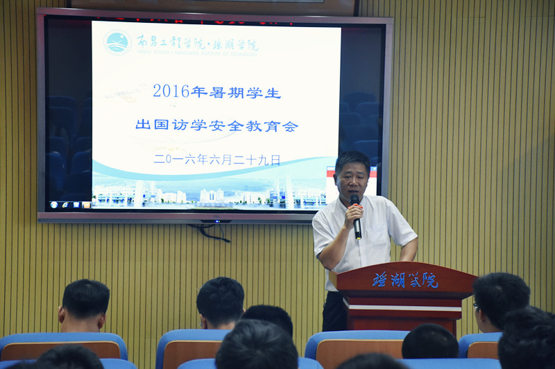 6月29日,我校2016年暑期学生出国访学安全教育会在瑶湖学院明德报告厅举行。教务处和水利与生态工程学院、土木与建筑工程学院、机械与电气工程学院、工商管理学院、经济贸易学院、外国语学院及瑶湖学院相关学院领导出席了会议,出国访学团带队教师和全体学生50余人参加了会议。