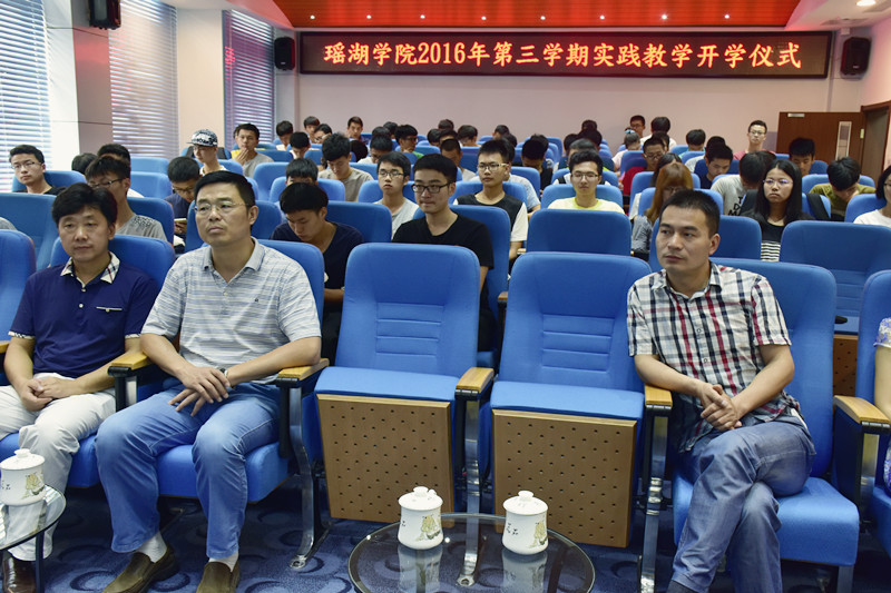 6月29日,瑶湖学院2016年第三学期实践教学开学仪式在学院明德报告厅举行。学校教务处处长、瑶湖学院常务副院长陆伟锋和土木与建筑工程学院院长徐斌出席了仪式,瑶湖学院学生专业导师和全体学生80余人参加了仪式。