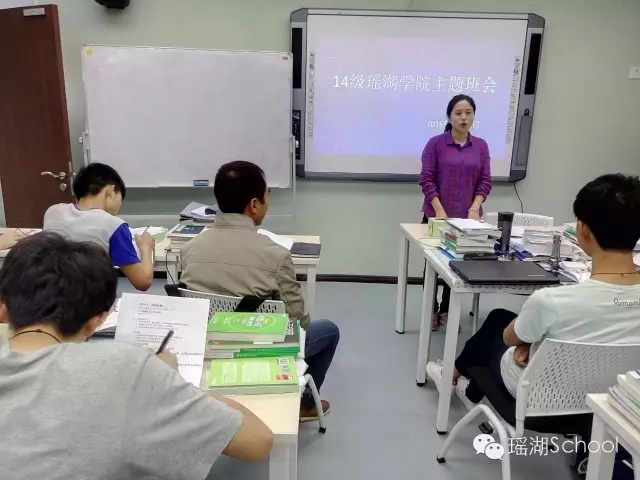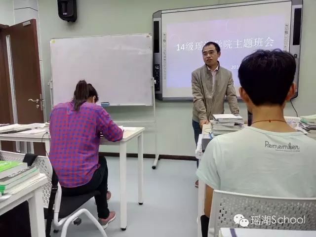 2016年4月21晚,瑶湖学院14级同学于瑶湖学院A503举行主题班会,本次班会由万志全、冷雪辉老师共同主持,班会内容主要包括学院值班出勤问题、三星评选、学风建设等几个方面。
