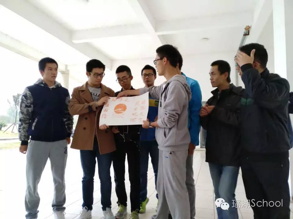 由于天气原因,这次素质拓展活动在大学生活动中心和艺术楼之间的架空层进行。首先,16级的学员们进行了一项名为“赢跑”的热身运动。正式的素质拓展活动主要有三个阶段组成:一是团队综合展现,在此阶段,16级同学们分为4组 ,每一组同学为自己的团队确定好队名、队歌、口号、队旗以及阵型,第二阶段包含几个团队项目,如“不倒森林”、“激情节拍”等,第三个阶段是由整个16级瑶湖学院共同参与的一个集体项目“万里长城”:所有的同学围成一圈并在李升智同学下令后坐到后一个人身上,极大程度上消除了部分同学之间的生疏感,同时,李升智同学作为学长,向16级学员们表明:希望同学们能够消除隔阂和生疏感,并且瑶湖学院16级学员应该是一个整体,不希望同学们因为分班级的原因而分裂为两个交往甚少的集体。