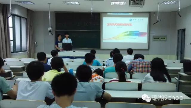 2015年6月3日,瑶湖学院于南教学楼B区306开展学风优良示范班级答辩,该答辩由瑶湖学院一班二班推选的代表王金辉、龙志伟同学上台进行展示,由瑶湖学院二班班主任万志全教授、肖小聪、张荣富、代智光、冷雪辉做为评委进行点评。