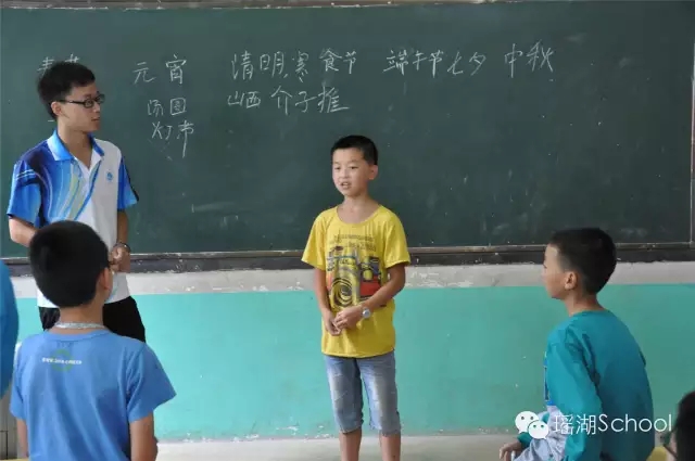 队员们按计划给当地小学生们在教室里上传统文化趣味课程。首先是武立乾同学通过讲故事的形式给孩子们讲了中国的传统节日,介绍了我国传统节日的由来,接下来是汉字书写大赛和歌曲PK比赛。上课期间,我们进行了有奖竞答,让孩子们自己参与到课堂当中。双峰学校的孩子们非常活跃,其中一位读5年级的小朋友刘佳乐多次积极上台发言,表现出了很大的兴趣。在歌曲Pk中,钟文瑾小朋友的一首筷子兄弟的《父亲》让全场为之欢呼,感动流泪。