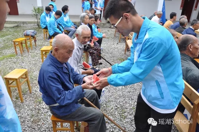 虽然下着雨,但并不影响队员们的心情,团队一行拿着调查问卷、紫砂杯、西瓜、糖等礼品,兴致勃勃地走在大路上,同时也有同学在紧张地准备着自己要到敬老院给老人慰问表演的节目。