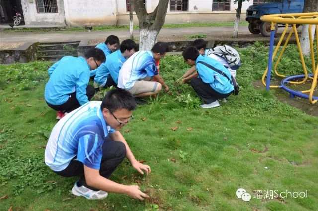 调研结束后,队员们开展环境卫生的清理活动。清幽的街道出现了一伙熟悉的身影,大家冒着小雨在路边拔野草,虽然天在下雨,但是同学们热情不减,耐心地蹲在路边认真拔草。