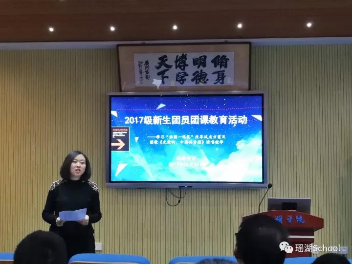 24日2017年11月下午,瑶湖学院王晶晶老师在明德报告厅开展2017级新生团员团课教育活动。