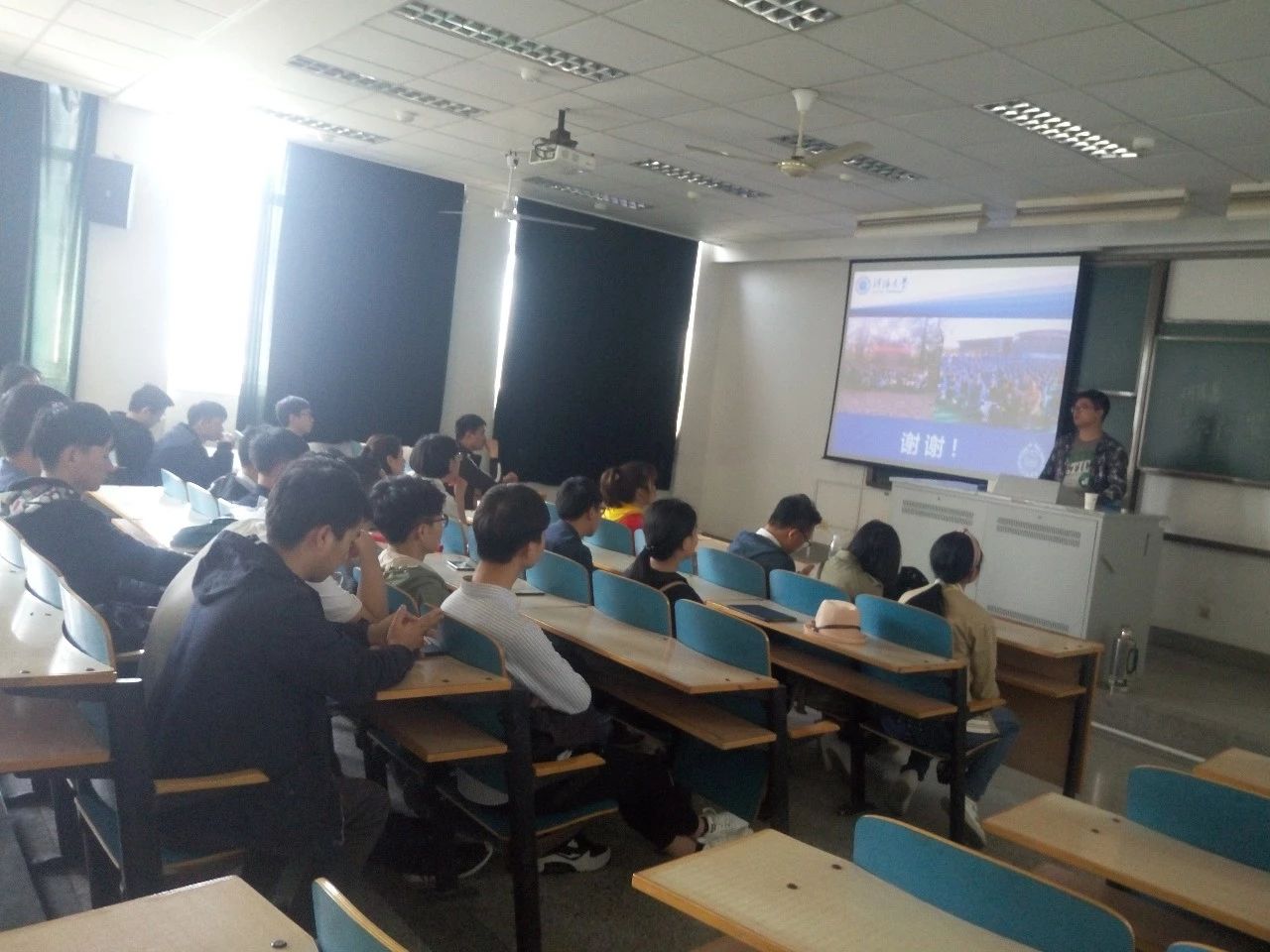 随后,大禹学院几位到场交流学长和学姐分别从不同角度就他们在大禹学院的四年学习生活时光作了认真和详细的回顾、分享,其中黄晨阳(拟录取至上海交通大学研究生)、瞿鑫宇(保研河海大学)、白伦(保研河海大学)都给我们留下了深刻的印象。接下来我班胡隽嘉、刘泽华和曾志伟等同学也大方得体的就我院相关办学情况、班级活动情况给大禹学院的学长学姐们作了简要介绍。分享交流报告会持续数小时,老师同学们踊跃发言,积极讨论,与大禹学院的学生进行了深入的交流和探讨。大家在听取学长学姐们的分享之后,尤其在得知大禹学院部分班级保研率并且大多被名校录取时大家感觉到了前所未有的压力,然虽如此,同学们也纷纷表示,要迎难而上,更加坚定了努力向前的步伐,面对远方更加笃定和自信,表态要更加努力学习,为学院和学校增光。最后参观了大禹学院的办公区、学习区,并合影留念。