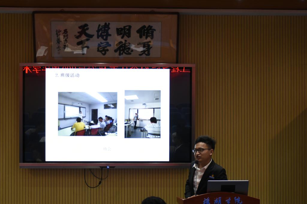 为全面贯彻党的十九大精神,奋力践行习近平新时代中国特色社会主义思想,努力推动我校学风建设再上新台阶,深入践行“修身 明德 博学 天下”的院训精神。5月2日,瑶湖学院于教学南楼明德报告厅举行 “优良学风班级”验收评比暨2018年“学风建设月”动员大会。参与会议的有冷雪辉老师、瑶湖学院各班班主任以及16级全体成员、部分17级学生。