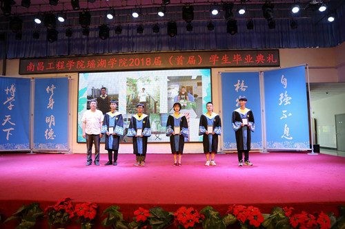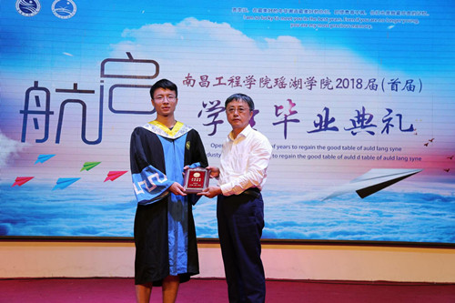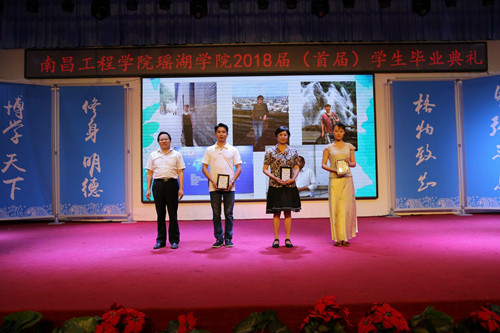 典礼上,揭晓了瑶湖学院2018届学生心目中“最美教师”和“最美学生”的评选结果,副校长汪胜前和水利与生态工程学院院长彭友文分别为他们颁奖,毕业生代表怀着感恩之情为辛苦培育自己的导师和老师们献上鲜花,并真挚握手。毕业生代表许松、教师代表谢帮华及校友代表肖潇分别为毕业生寄语。