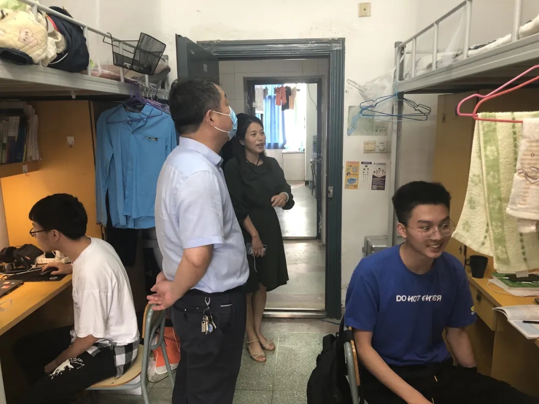 走访中,杨院长深入学生寝室,仔细查看了寝室的基础设施,环境卫生,用电安全。在这期间,杨院长和同学们进行了亲切的交流,询问了同学们的身体健康情况和返校后是否适应疫情下的学校生活,叮嘱大家出门一定要记得佩戴口罩,加强个人防护措施。了解了同学们的需求和问题,鼓励同学们在学好文化课知识的同时,也要进行广泛的课外阅读来提升自己的综合素养。