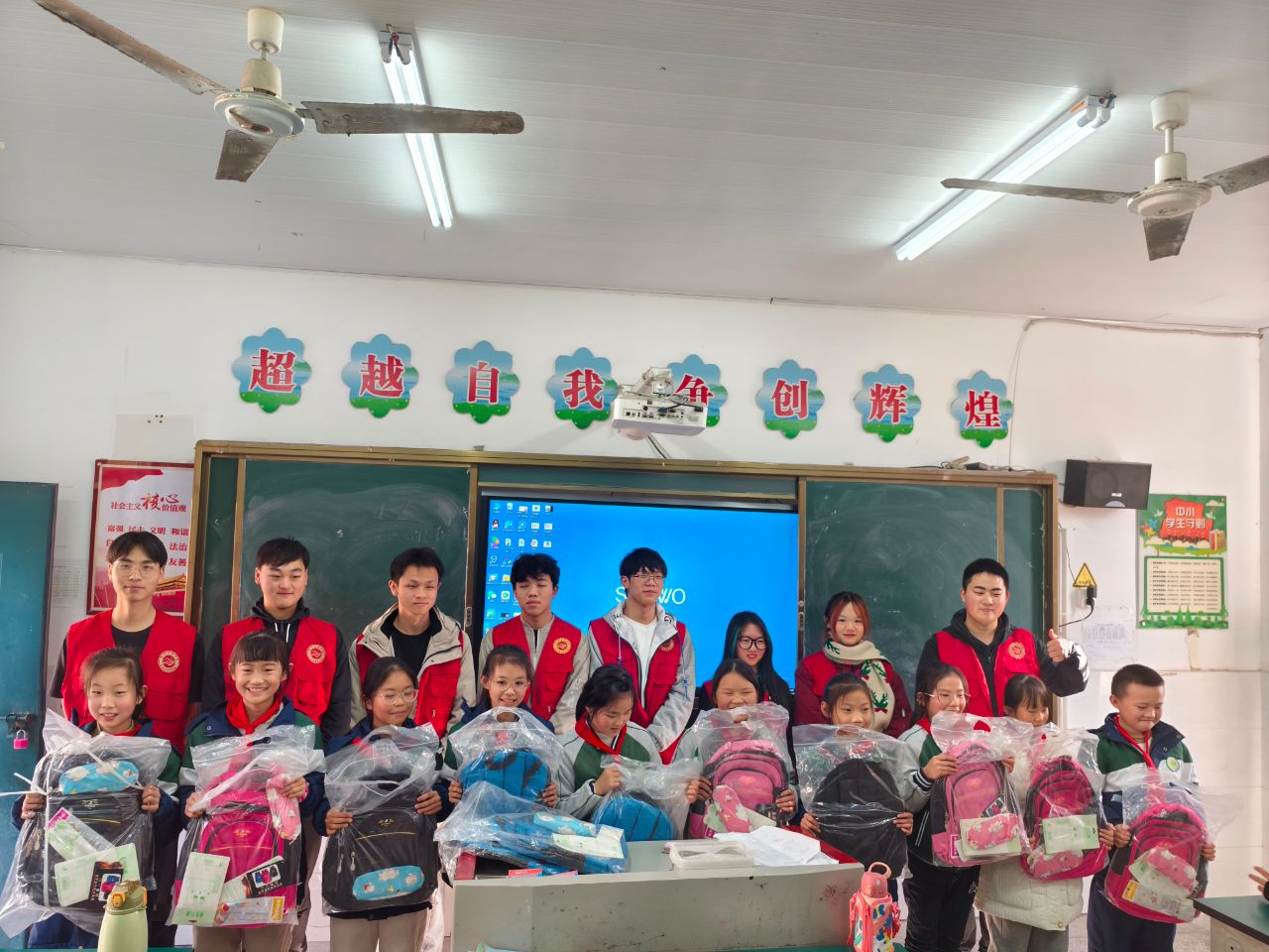 为了能让孩子们感受到真切的关爱,志愿者们提前规划、讨论,为孩子们设计了很多生动有趣的互动环节。这不仅激发了孩子们的求知欲,还彰显了瑶湖学院青年团员志愿者“奉献、友爱、互助、进步”的志愿服务精神。志愿者们还利用瑶湖学院的爱心基金,为孩子们购买书包、文具盒、尺子等学习用品作为礼物。课堂气氛融洽、互动积极,孩子们的欢声笑语不绝于耳。