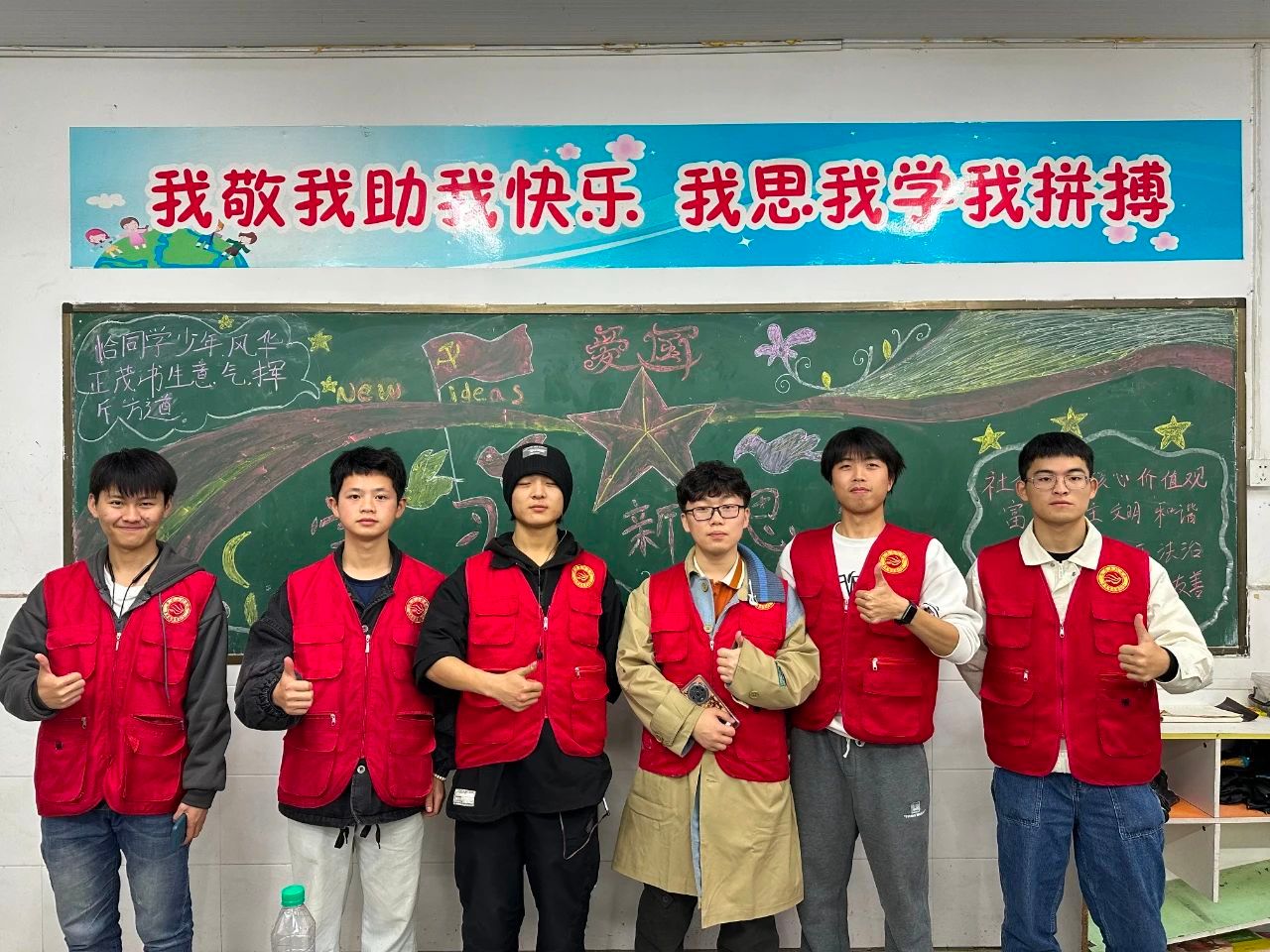 随着各个组的黑板报相继完成,各组志愿者也完成了各个教室的打扫工作,此次志愿服务活动也落下帷幕。志愿者们在实践中挺膺担当,以青春力量赋能志愿服务,为小朋友们的成长之路“增色”。