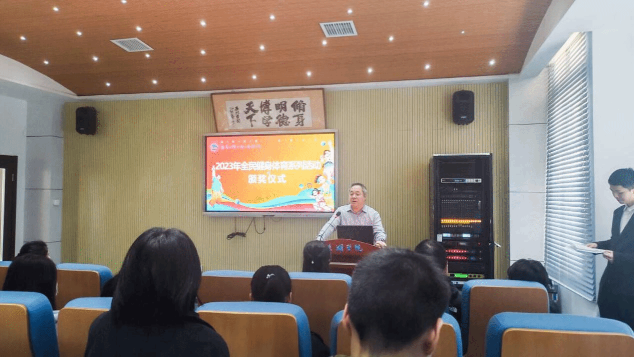 少年强则中国强,体育强则中国强。伴随着阵阵凯歌,瑶湖学院全民健身体育系列活动也落下帷幕,我院学子在校运会、乒乓球、篮球、校园马拉松等多项赛事中荣获佳绩。 为了对参与全民健身体育系列活动的同学们表示鼓励与祝贺,近期,瑶湖学院在明德报告厅举行2023年全民健身体育系列活动颁奖仪式。瑶湖学院副院长杨文利,全院老师、全体获奖同学及部分学生代表参加此次表彰会。