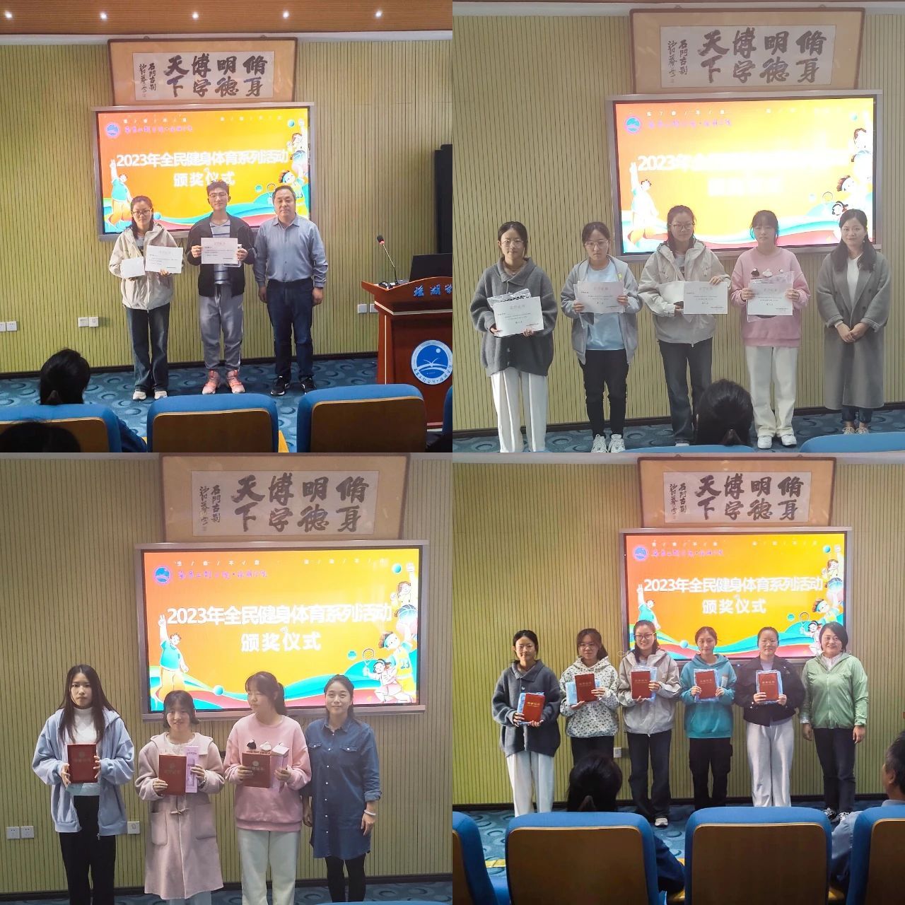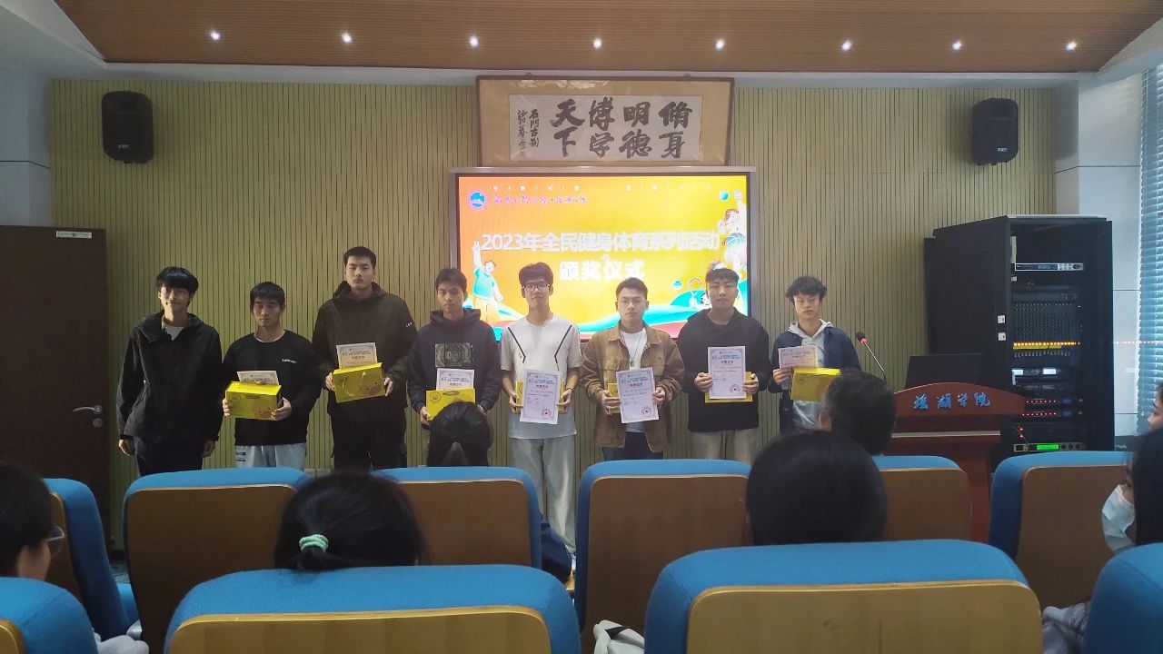 随后,张雯雯老师宣布了瑶湖学院2023年全民健身体育系列活动表彰学生名单,各位老师为获表彰同学颁发荣誉证书和奖品。