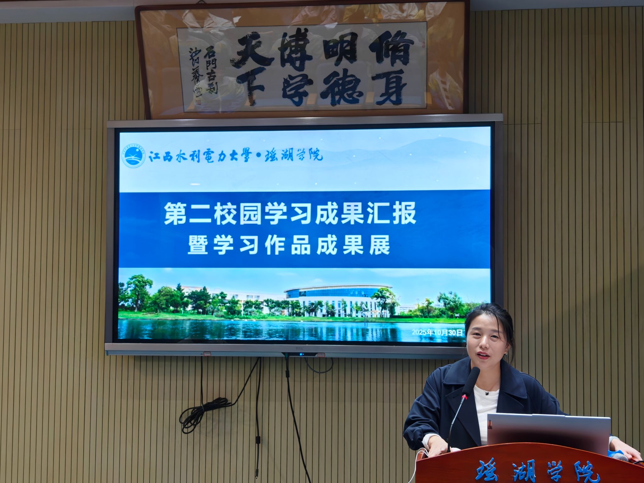 10 月 30 日,瑶湖学院在明德报告厅举办第二校园学习成果汇报暨学习作品成果展,带队老师冷雪辉、参与第二校园学习的19名学生及 2025 级全体学生参加。