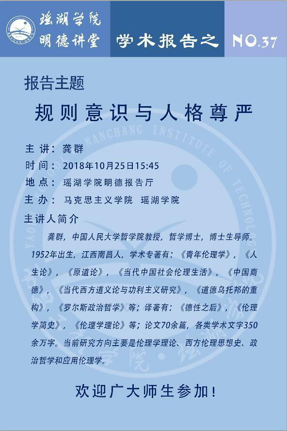 龚群,中国人民大学哲学院教授,哲学博士,博士生导师。1952年出生,江西南昌人,学术专著有:《青年伦理学》,《人生论》,《原道论》,《当代中国社会伦理生活》,《中国商德》,《当代西方道义论与功利主义研究》,《道德乌托邦的重构》,《罗尔斯政治哲学》等;译著有:《德性之后》,《伦理学简史》,《伦理学理论》等;论文70余篇,各类学术文字350余万字。当前研究方向主要是伦理学理论、西方伦理思想史、政治哲学和应用伦理学。